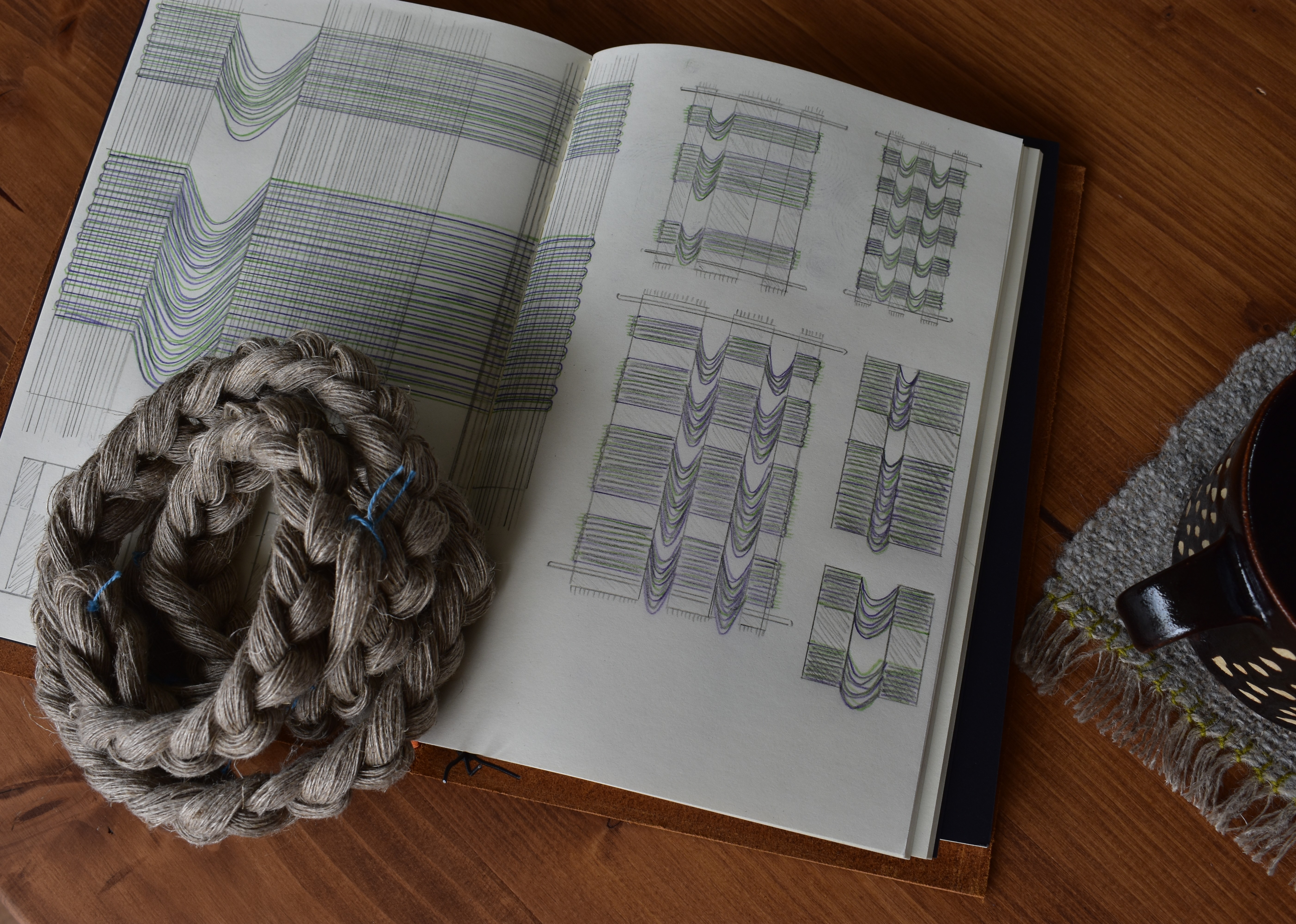 Handwoven linen, repurposed wool, and industry surplus mohair.